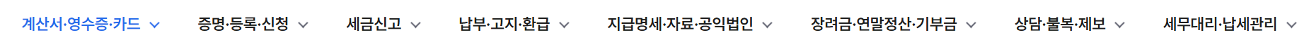 ●상단 메뉴 중 [계산서, 영수증, 카드] > [전자세금계산서 발급]으로 이동하도록 합니다.
