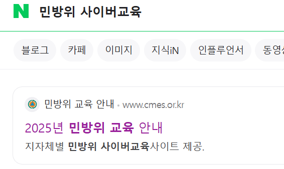 ● 포털사이트에서 '민방위 사이버교육' 검색